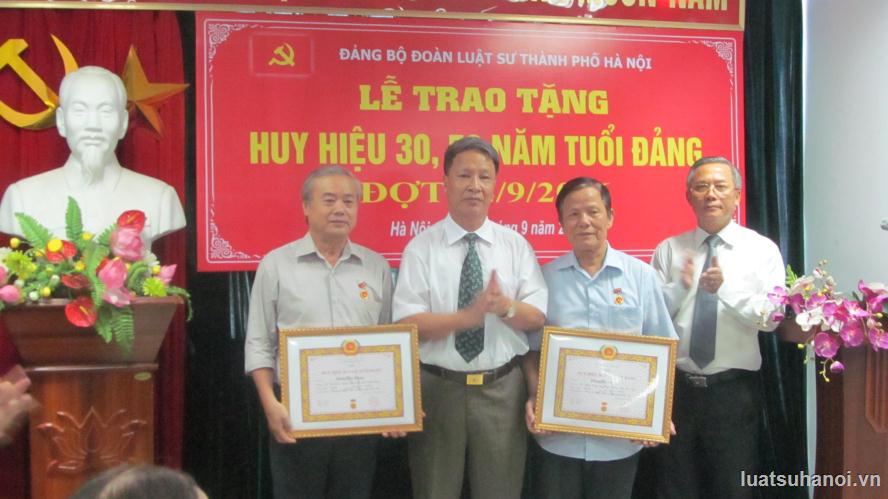 Thay mặt Đảng uỷ, đồng chí Lê Đức Bính - Bí thư Đảng ủy trao tặng huy hiệu 50 năm tuổi Đảng cho đảng viên Đinh Thế Hùng thuộc Chi bộ luật sư Cầu Giấy 1 và đảng viên Phạm Huy Đản thuộc Chi bộ Đống Đa 3 và trao tặng huy hiệu 30 năm tuổi Đảng cho đảng viên Phạm Tường Long thuộc Chi bộ Luật sư Long Biên 2.